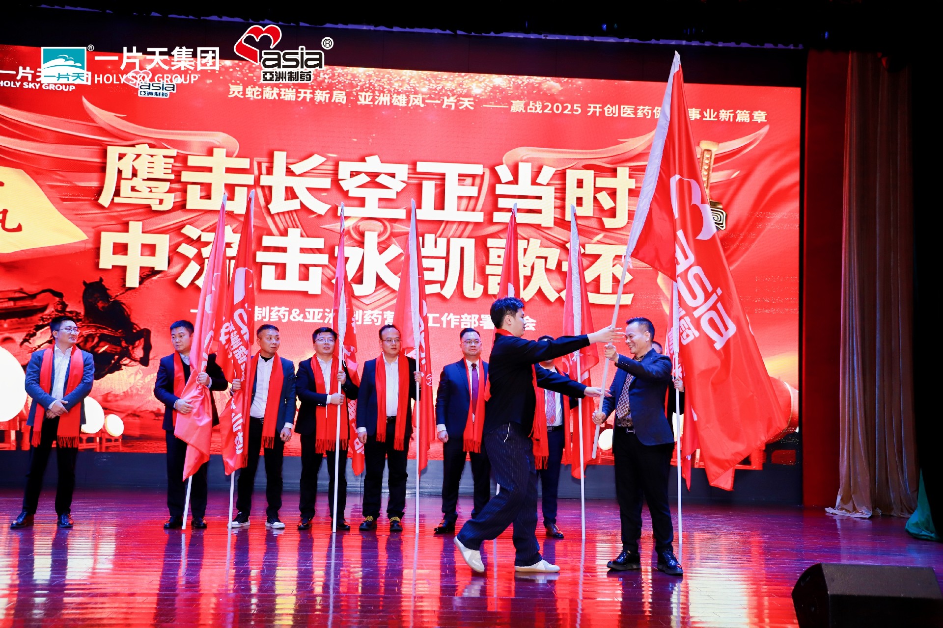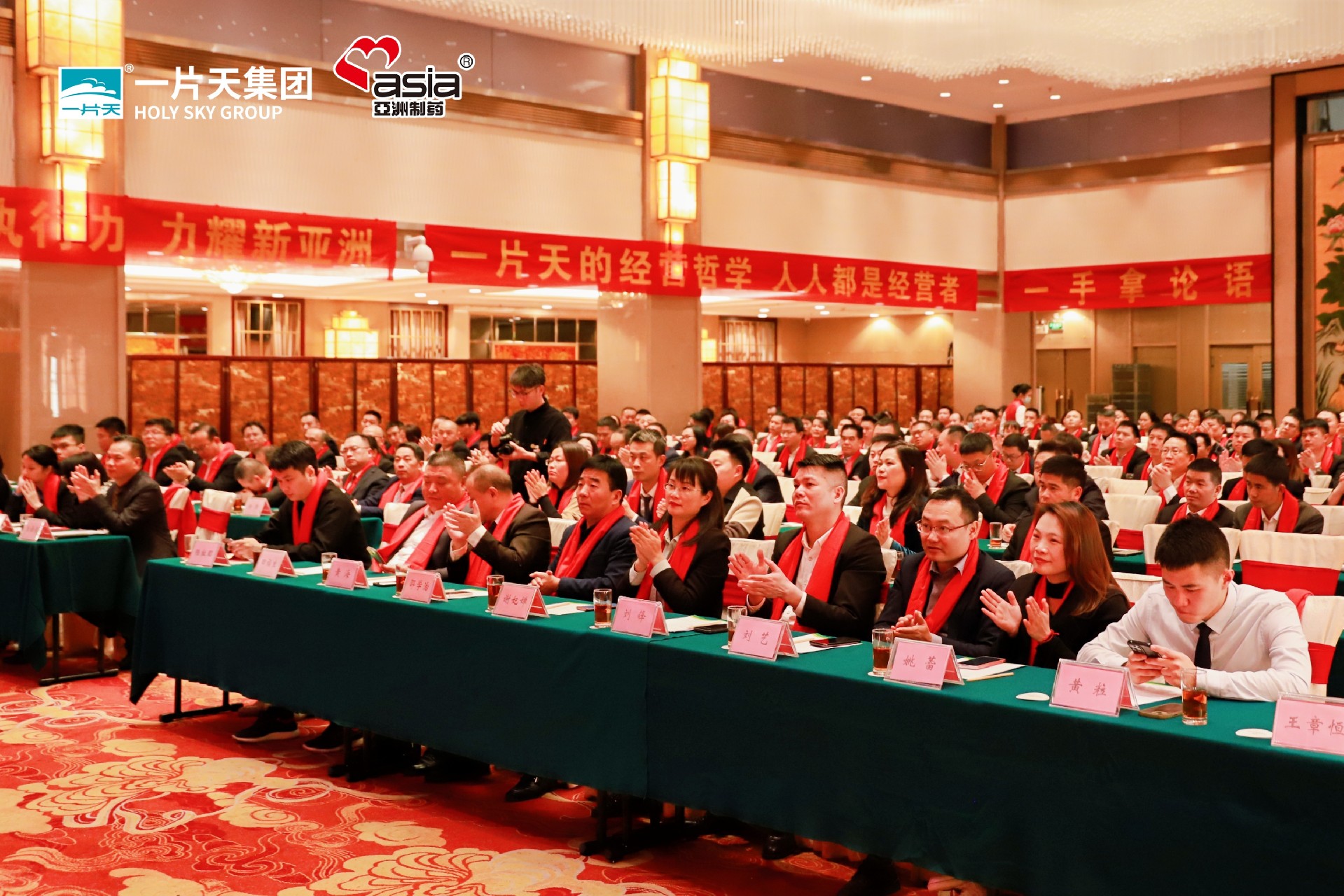 1月3日上午,大會準時開幕。董事長陸錫傍、集團副總裁陳奕紅、新零售總經(jīng)理陸祉昭、集團董事長助理陸祉翩、一片天醫(yī)藥集團董事長助理黃海、處方事業(yè)部總經(jīng)理潘毅、一片天制藥OTC總經(jīng)理李華鋼、亞洲制藥OTC事業(yè)部總經(jīng)理徐強、亞洲制藥KA事業(yè)部總經(jīng)理賀斌、春砂&九轉乾坤事業(yè)部總經(jīng)理申宗琦、亞洲制藥辛夷&祛濕事業(yè)部總經(jīng)理華萃、亞洲制藥補益事業(yè)部總經(jīng)理張建立、市場部總監(jiān)王章恒及各團隊近300人參加了本次大會。